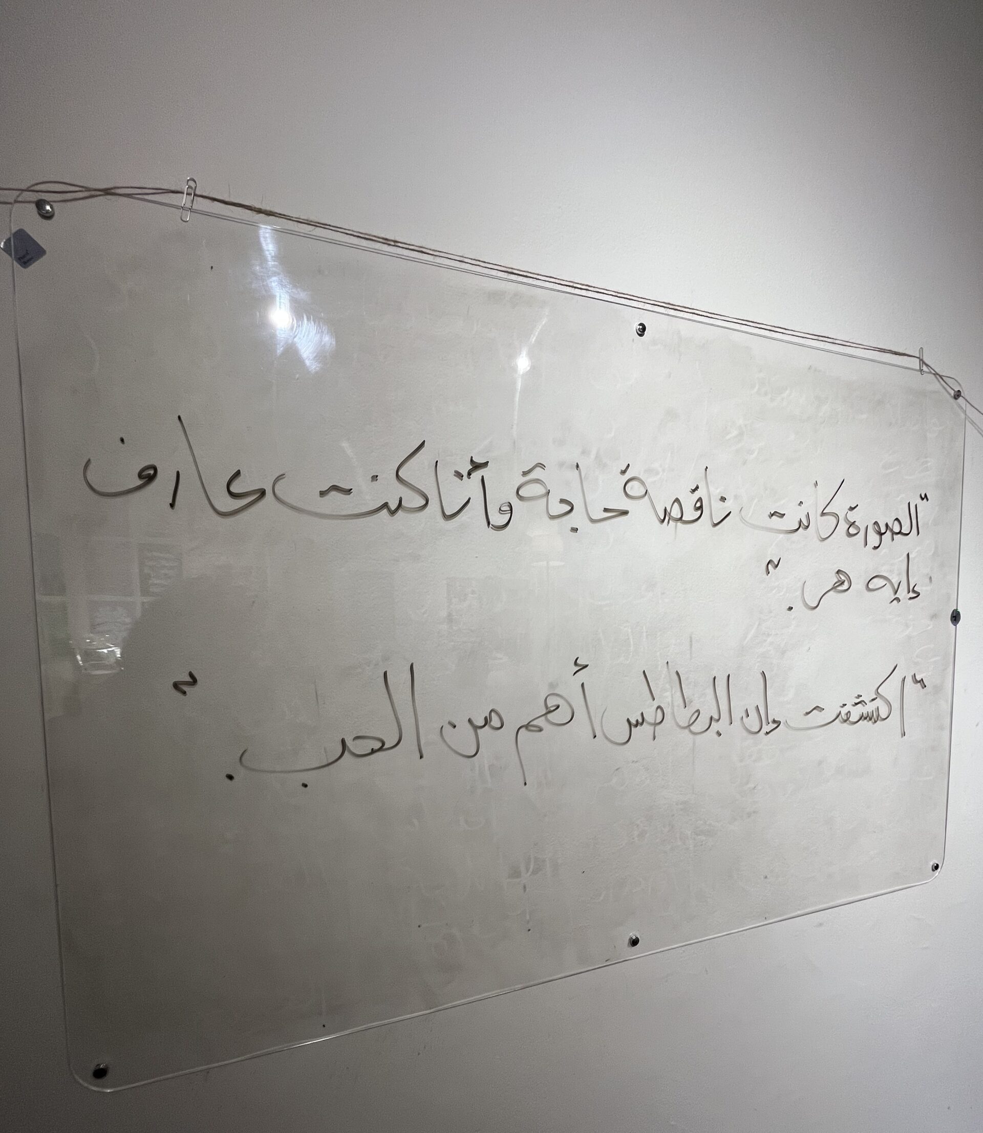 وعلى فكرة، خربشتني كمان، بس مزعلتش، عشان عارفة إني معاك من أول ثانية في يومك لحد نومك، وإحنا سوا، وإنت بتقرا، تكتب، وكل حياتك المملة دي، مع زرعك الميت اللي فرجتني عليه.